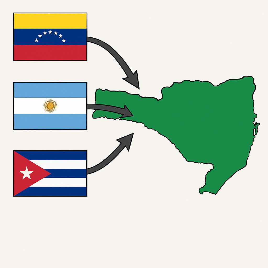 Entre janeiro e dezembro de 2024, Santa Catarina registrou 18.900 novos trabalhadores vindos de outros países. Os venezuelanos possuem a maior participação, com 14.135 imigrantes contratados, seguido por argentinos, com 1.510, e cubanos, que totalizam 1.485.